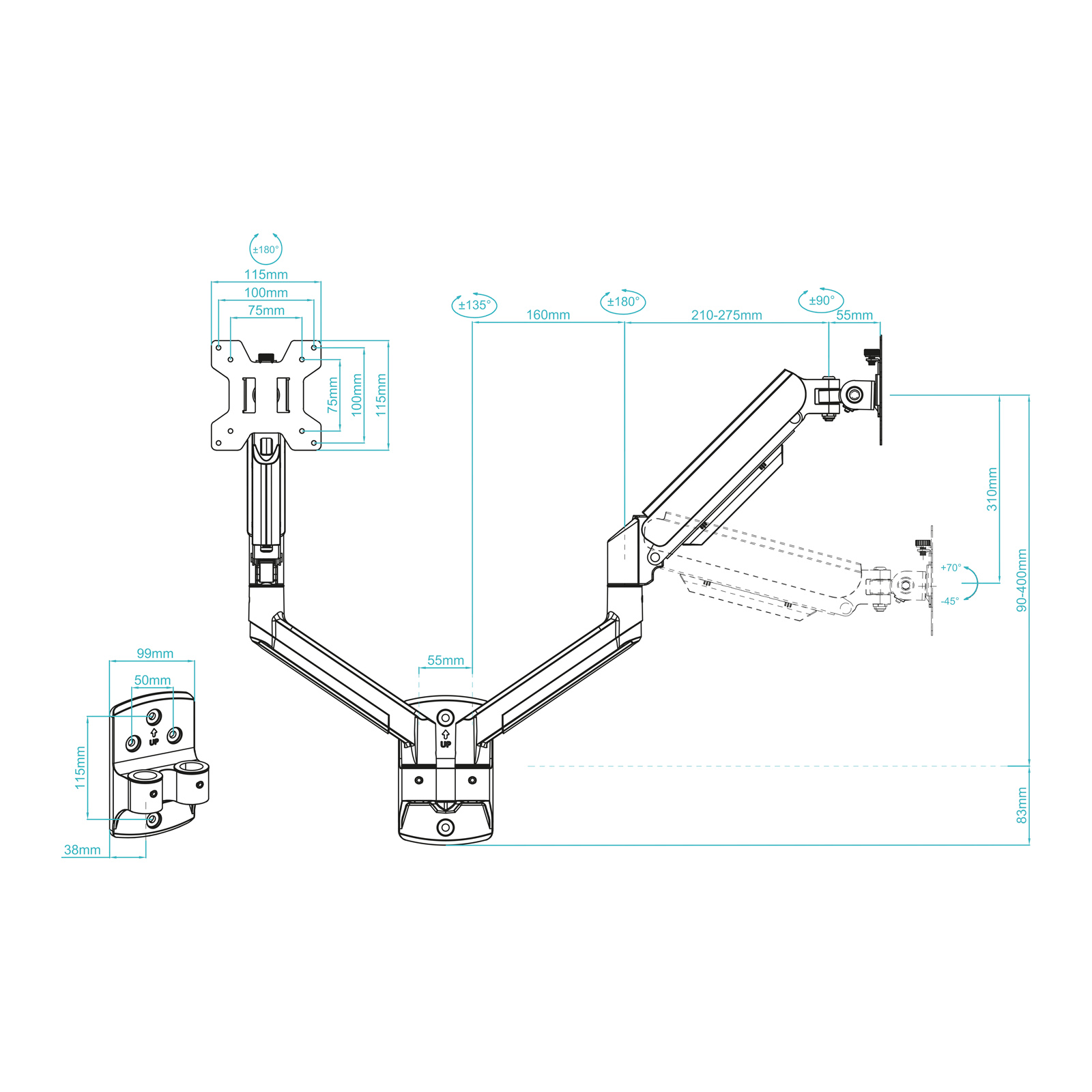 Soporte de Pared para 2 Pantallas de 13”-34”, Negro