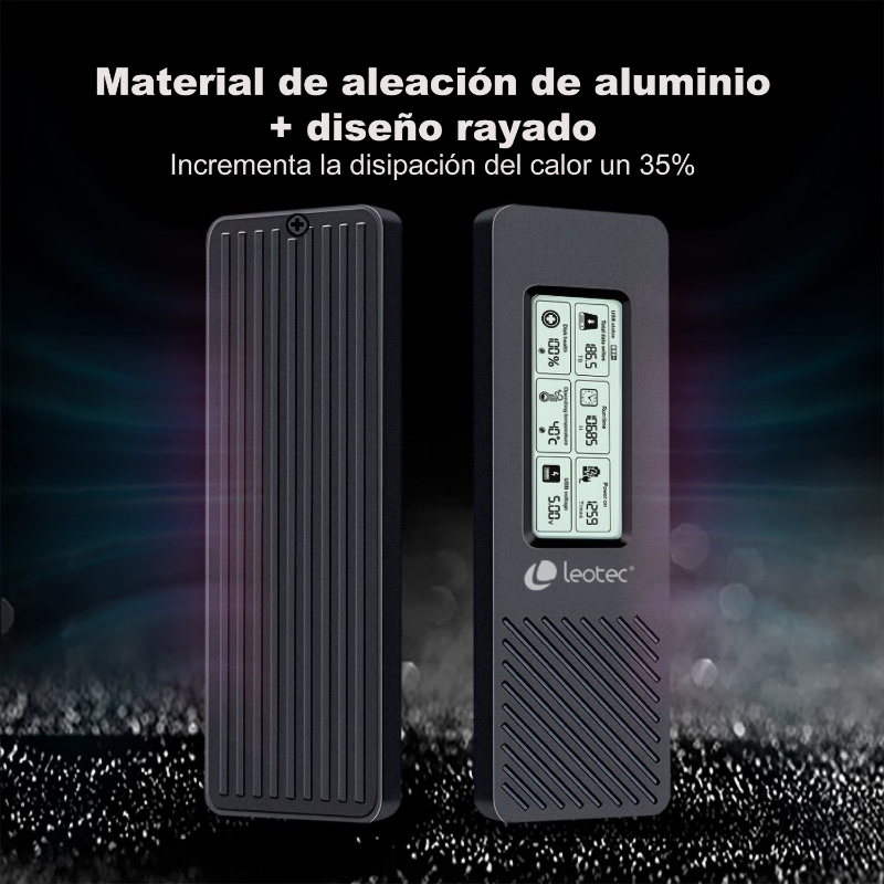 Material de alta calidad con disipacion de calor mejorada: Fabricada en aluminio de alta calidad con una superficie rayada, esta caja ofrece una excelente disipacion del calor, protegiendo tu SSD de posibles sobrecalentamientos y asegurando un rendimiento constante y fiable.