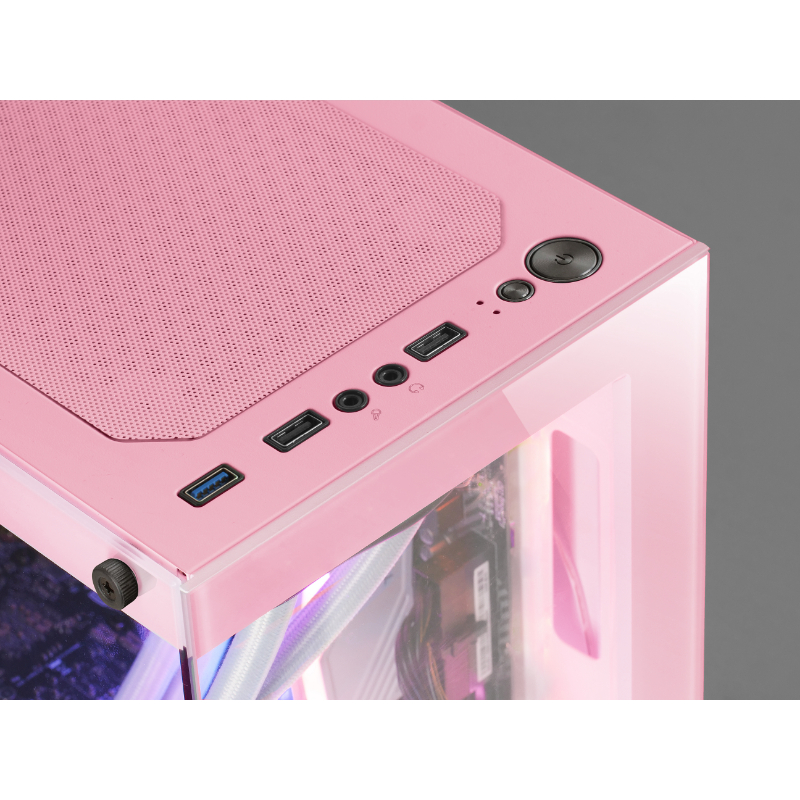 Bahias: Internas: 2 x 3'5, 3 x 2'5 Color del Producto: Rosa Conectores: USB 2.0 x 1, USB 3.0 x 2, Audio In/Out F.A.: No Formato: Micro ATX Formato F.A.: ATX Medidas: 423 x 200 x 326mm Potencia F.A.: Sin fuente