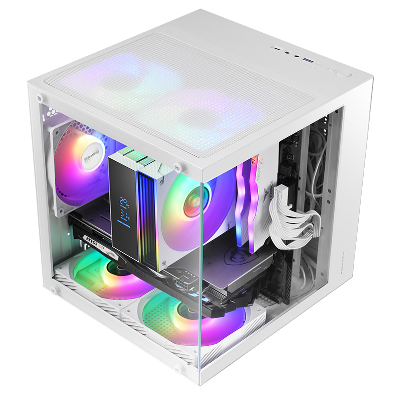 ● Bahias: 1 x 3.5 HDD + 2 x 2.5 SSD ● Color del Producto: Blanco ● Formato: Micro ATX/Mini ITX ● Medidas: 276 × 287 × 292 mm ● Nº USB-C: 1