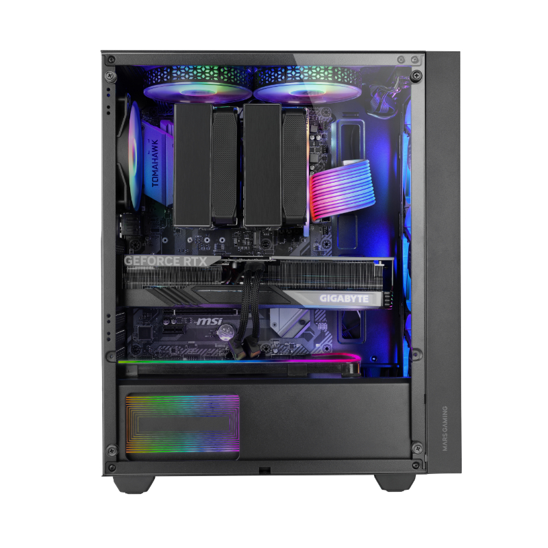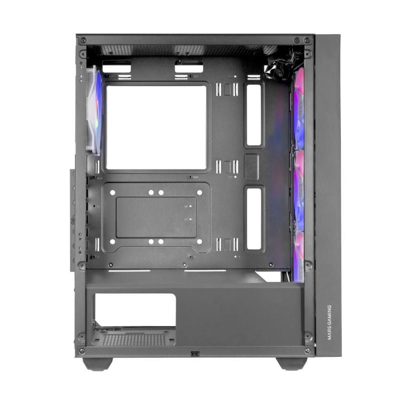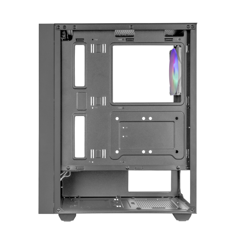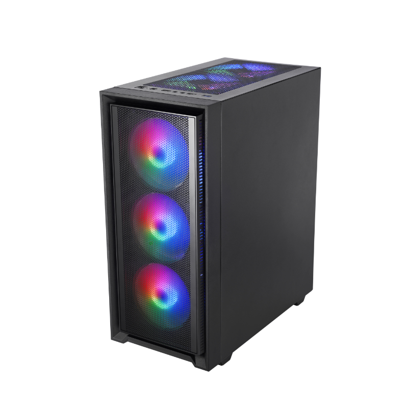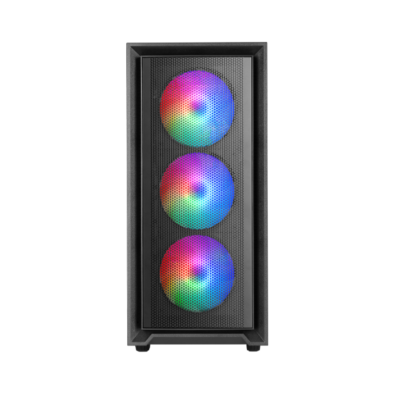 La caja MC-AIR combina alto rendimiento y diseño con su elegante frontal Mesh y 4 ventiladores FRGB Rainbow de 120mm preinstalados (3 en el panel frontal y 1 en la parte trasera). Su ventana lateral de cristal templado permite exhibir tu configuración con estilo, mientras su diseño de doble cámara optimiza el flujo de aire para mantener tus componentes en temperaturas óptimas.