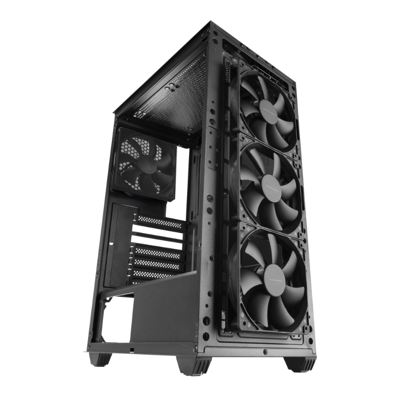 La caja de ordenador MC-PMAX fusiona potencia y estilo en una semitorre ATX que destaca por su elegante diseño PURE BLACK. Con panel frontal MESH optimizado para un flujo de aire superior y una ventana lateral de cristal templado que muestra tu configuración al completo. Equipado con 4 ventiladores FDB ultrasilenciosos de 120mm, soporte para refrigeración líquida de hasta 360mm y un eficiente diseño de doble cámara, este chasis garantiza una refrigeración y rendimiento óptimos, ideal para configuraciones de alto rendimiento.