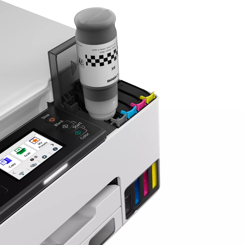 Esta impresora 3 en 1 compacta, segura y fácil de usar ofrece la experiencia de oficina completa para el trabajo híbrido y en casa. La MAXIFY GX1050 es una impresora para el negocio con capacidades de impresión, copia y escaneado, ideal para el uso doméstico. Es capaz de imprimir documentos resistentes y sin manchas rápidamente y en grandes volúmenes, e incluso puede escanear directamente a carpetas de red compartidas o correo electrónico. Como ocurre en todos las impresoras Canon MegaTank, sus depósitos de tinta rellenables individuales mantienen los costes operativos bajos y la pantalla LCD abatible de 2,7" facilita el uso de esta impresora para la oficina pequeña.