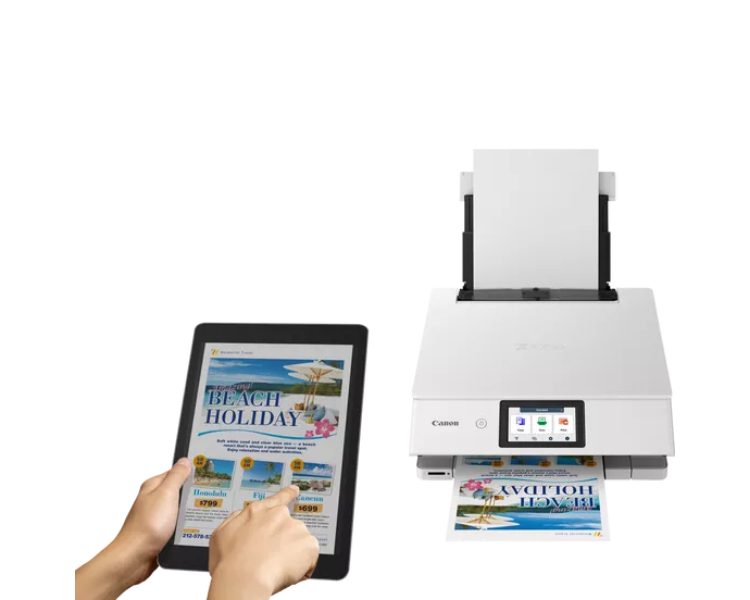 Consigue impresiones de alta calidad sin esfuerzo con la impresora PIXMA serie TS8750, una impresora para el hogar fácil de usar con pantalla táctil de 4,3", interfaz de usuario Switch optimizada y configuración Wi-Fi intuitiva. Su impresión con 6 tintas produce resultados rápidos y asombrosos en documentos, fotos a color y mucho más.