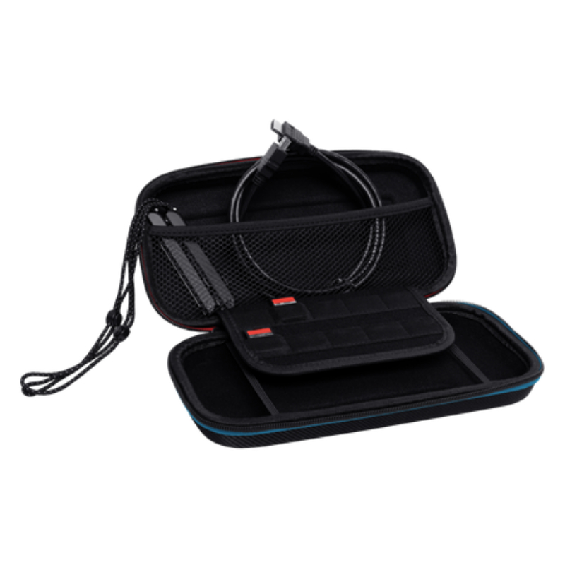 Con este estuche, la Nintendo Switch y todos sus accesorios estarán a salvo en casa o cuando te desplaces. Su amplitud garantiza espacio para la Switch, Switch OLED o Switch Lite; y hasta 4 mandos Joy-Con, junto con un bolsillo adicional donde guardar muñequeras, cables, el cargador y 10 juegos. Además, se ha creado a prueba de golpes e incluye un asa de transporte fácil y una bandolera extraíble. ¡Este estuche es imprescindible para todos los amantes de la Switch!