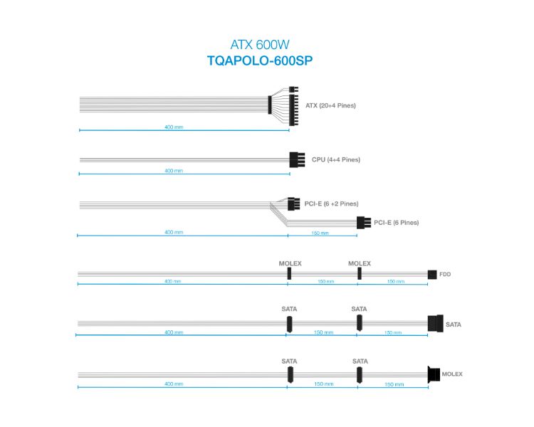 Color del Producto: Negro Eficiencia: 78% Formato F.A.: ATX Potencia F.A.: 600W